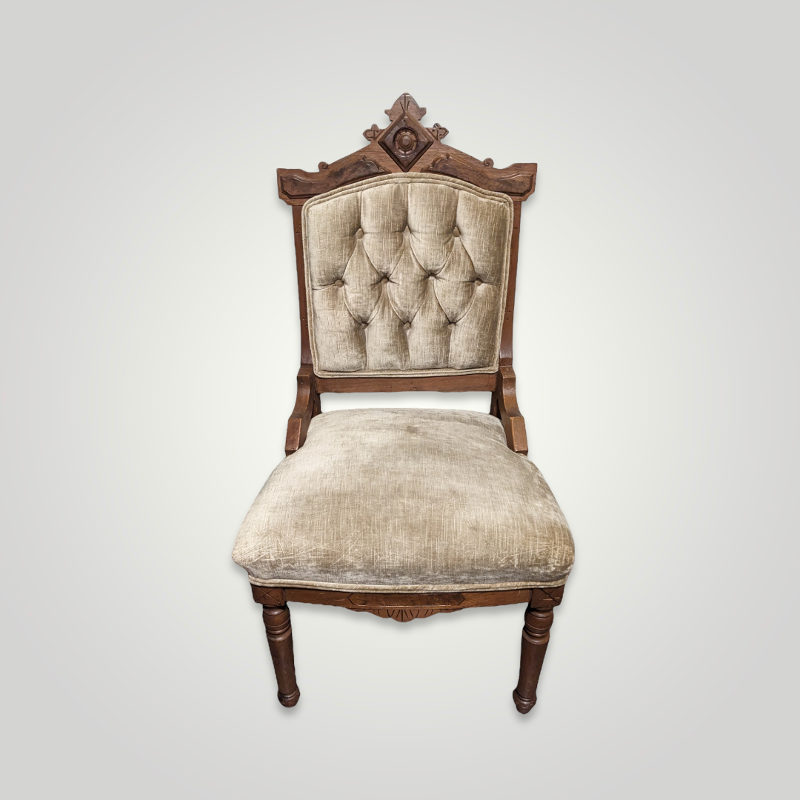 Our gorgeous vintage tufted velvet and wood chairs makes the perfect statement piece for your wedding or event. Use it for a beautiful lounge area, head table, or photo backdrop that will wow your guests and make beautiful photos and memories for years to come!